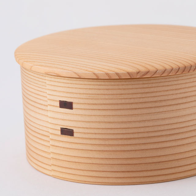 This immaculately handcrafted bentwood lunch box brings traditional magewappa craftsmanship to your daily routine. Made from Akita cedar, the wood's natural moisture-regulating properties provide ideal setting, preserving flavor and texture even hours after packing. The cedar's gentle aroma and the beautiful round form make every meal feel a bit more special too.