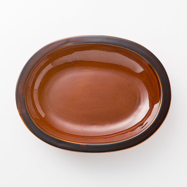 Banko Ware Oval Bowl - Glazed Amber