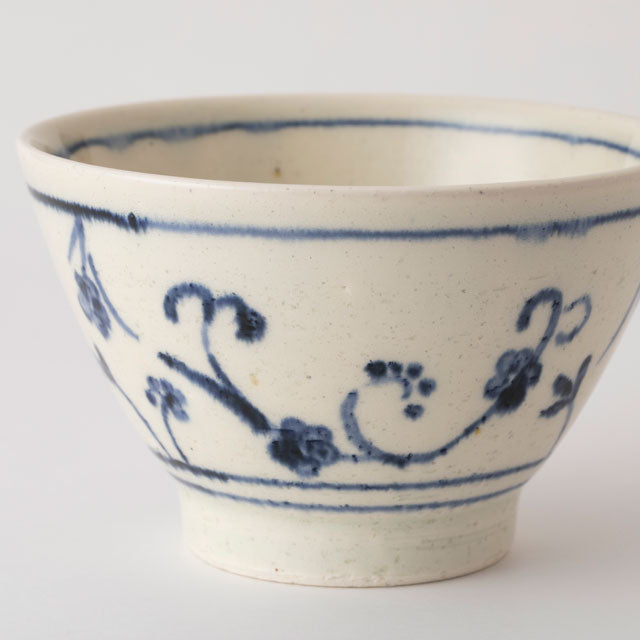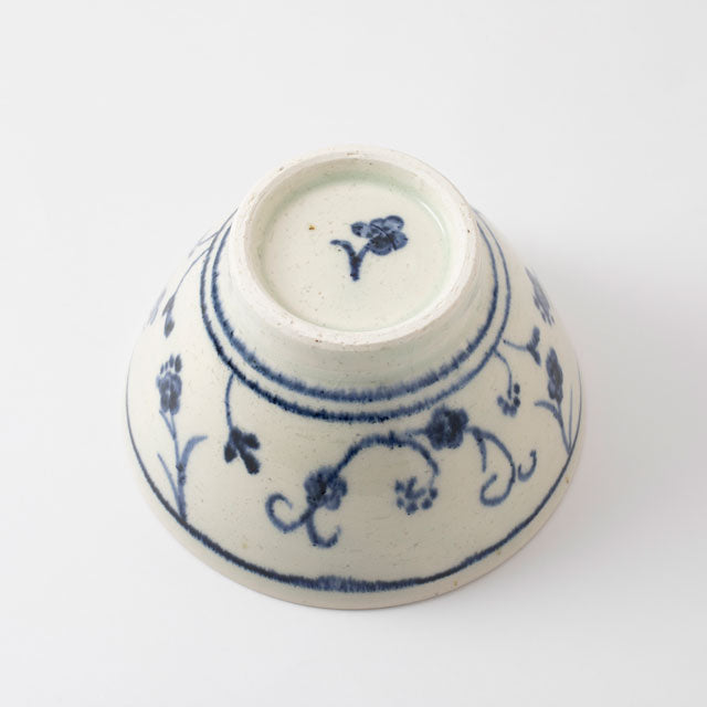Inspired by historic Annan ware from Vietnam, with hand-painted flowing vine patterns symbolising prosperity, and was once loved by the Japanese tea masters. The blue vine flows beautifully on a textured cream ceramic bowl. Crafted by Shōtōen, an innovative Mino ware kiln maker known for approaching Japanese pottery traditions with experimental spirit.