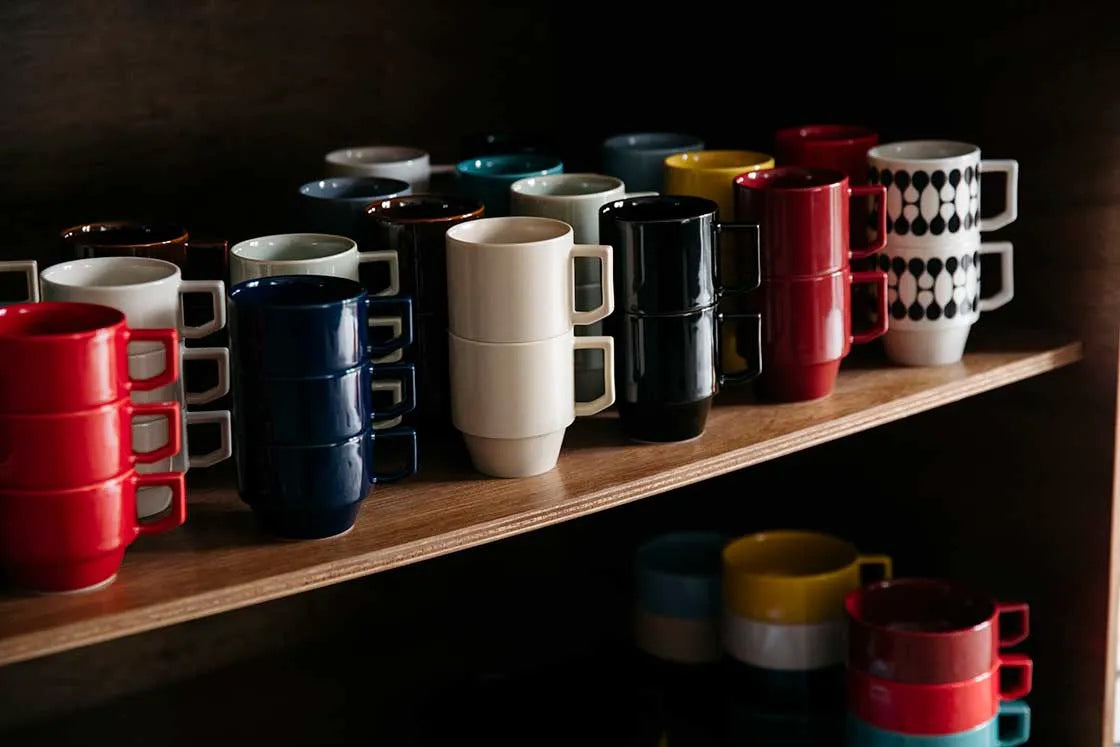 Inspired by the playful spirit of 1960’s American diners, these Japanese ceramic mugs feature bold pop colours, smooth glazes, and sturdy handles designed for everyday use.