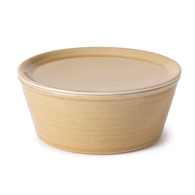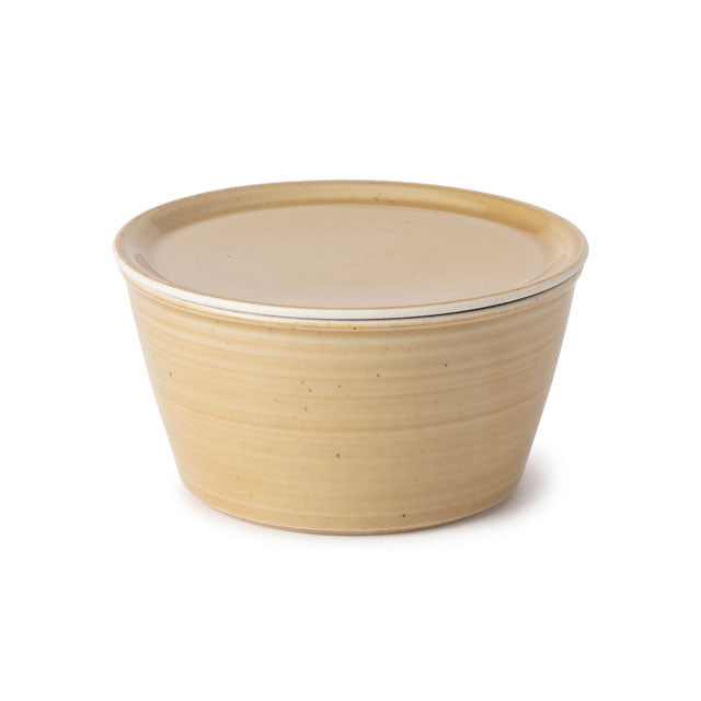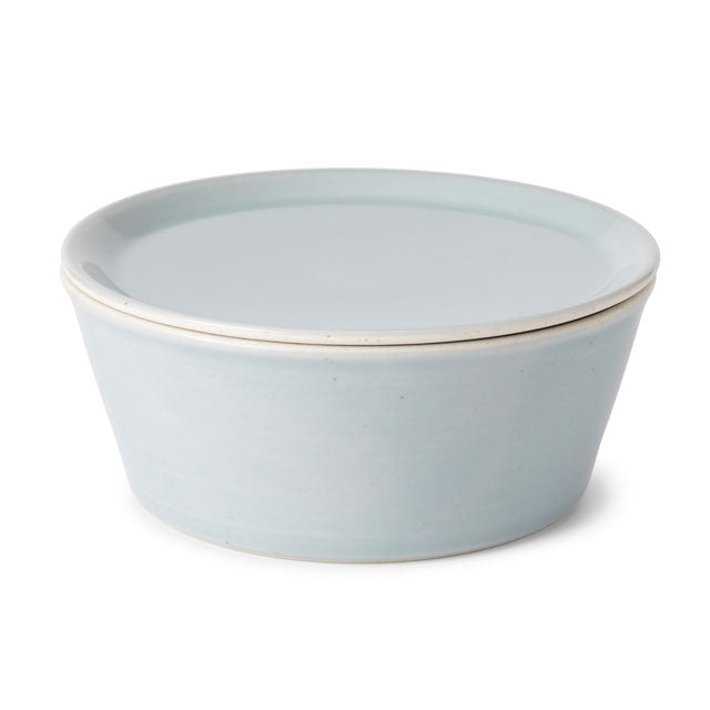 Made from low-porosity porcelain fired using the precision "co-firing" technique, where lid and body are fired together to minimise gaps and achieve exceptional airtightness. No plastic wrap or seal needed—good in many ways.