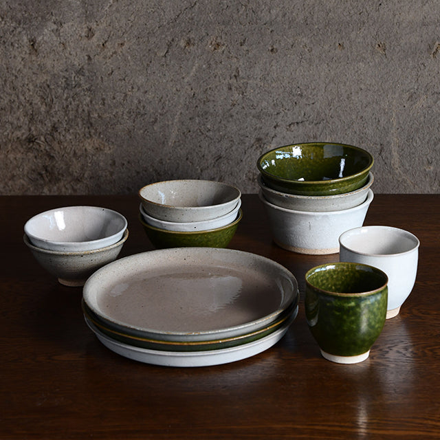 Created by Nakagawa in collaboration with a Mino kiln as part of the "Essential Set" series—designed for effortless daily use of regional Japanese tableware. This piece showcases Mino ware's distinctive character, where flowing glaze and irregular shapes are appreciated as beauty, whilst blending naturally into modern table scenes.