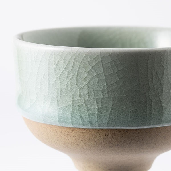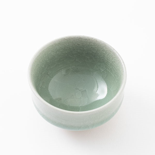 A special tea cup & saucer set with stunning green celadon glaze and beautiful crackle patterns throughout. Made using generous amounts of celadon glaze from rare blue celadon stone found only in Okawachiyama, Imari City—the crackling effect occurs naturally as the clay and glaze shrink at different rates.