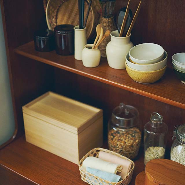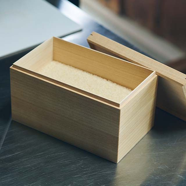 Long treasured in Japan's humid climate for storing kimonos and valuables, paulownia maintains consistent humidity level inside the box—ideal for bread, rice (holds 5kg), tea, dried goods, and sweets. The sleek design blends seamlessly whether left out in the kitchen or lined up in cabinets.