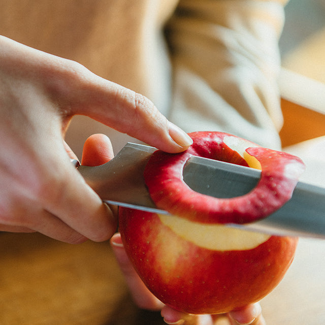 The compact size allows easy manoeuvre, making full use of the sharp blade - made by Sumikama, a company that has been making knives for over 100 years in Seki, Gifu Prefecture. The handle features beautiful black cherry wood with its distinctive grain, finished with the same wood coating used for wooden tableware and cutlery.