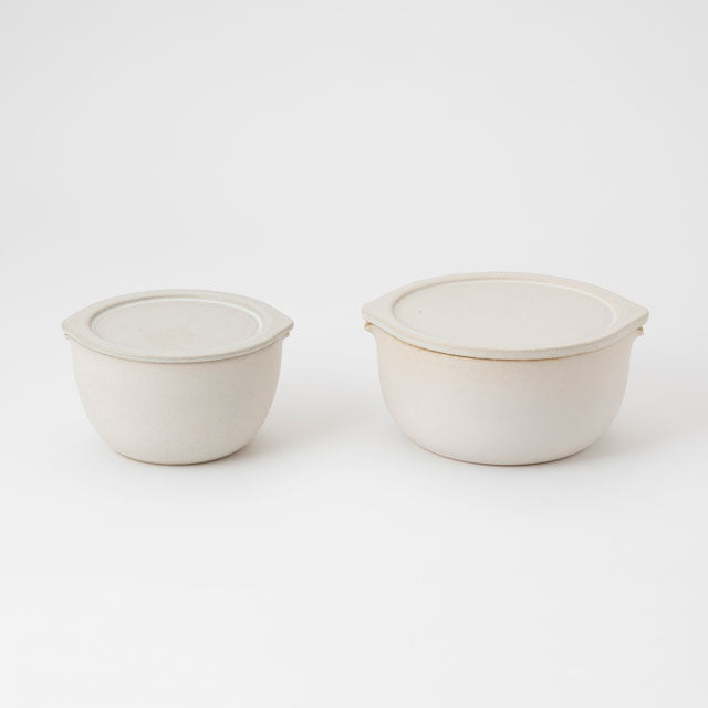 The thoughtful design includes a spout for draining—simply slide the lid slightly and pour out excess moisture to prevent sogginess. With a beautiful rustic texture, it can be served directly from microwave to table. A practical piece that makes healthy eating easier.